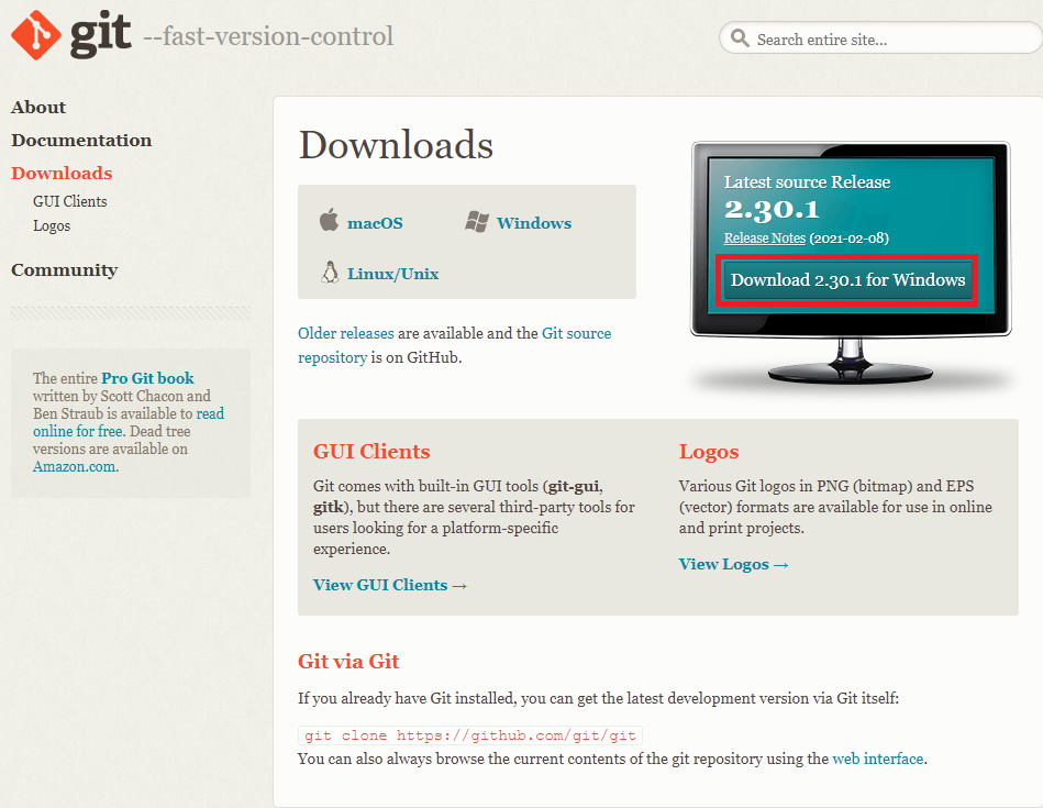 Downloads macOS Windows Linux/Unix Older releases are available and the Git source repository is on GitHub. GUI Clients Git comes with built-in GUI tools (git-gui, gitk), but there are several third-party tools for users looking for a platform-specific exp