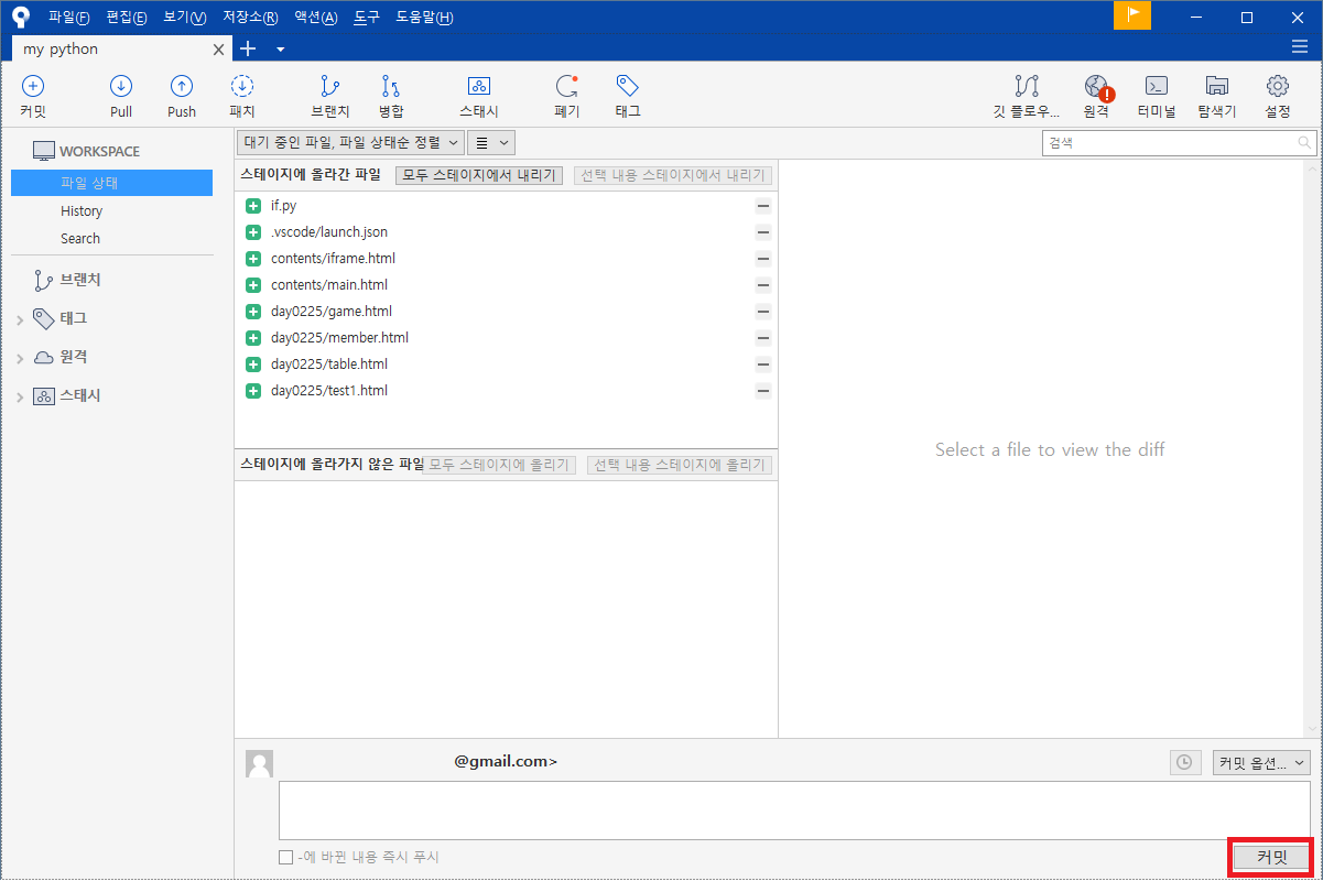 **일부만 백업시: 백업을 계속 할 파일들 선택 후 선택내용스테이지에 올리기!