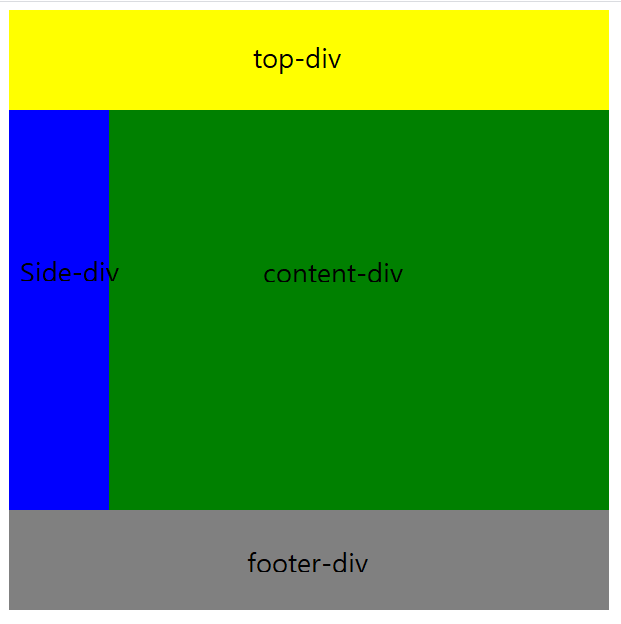 차래대로 top-div, side-div,, content-div,footer-div를 만들어줍니다.