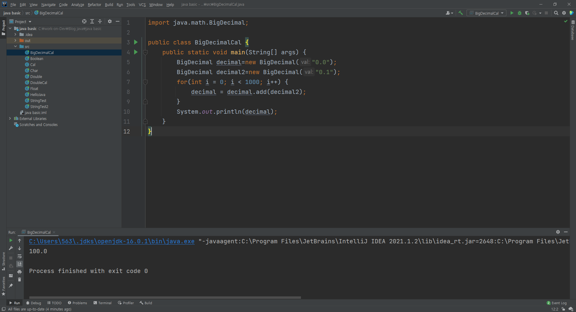 float과 double이 가진 오차가 없는, java에서 돈과 소수점을 다룬다면 필수로 사용해야하는 객체입니다.