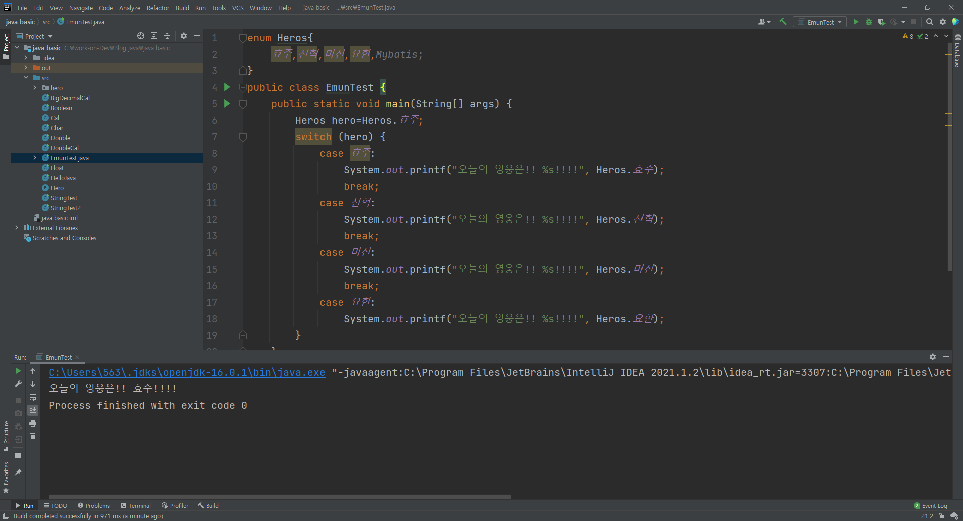 System.out.printf("오늘의 영웅은!! %s!!!!", Heros.신혁);