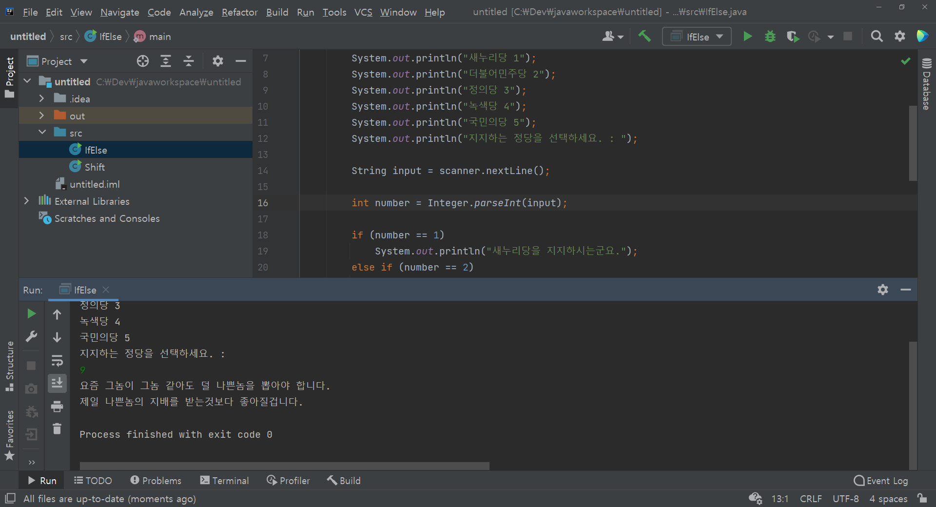 System.out.println("지지하는 정당을 선택하세요. : ");