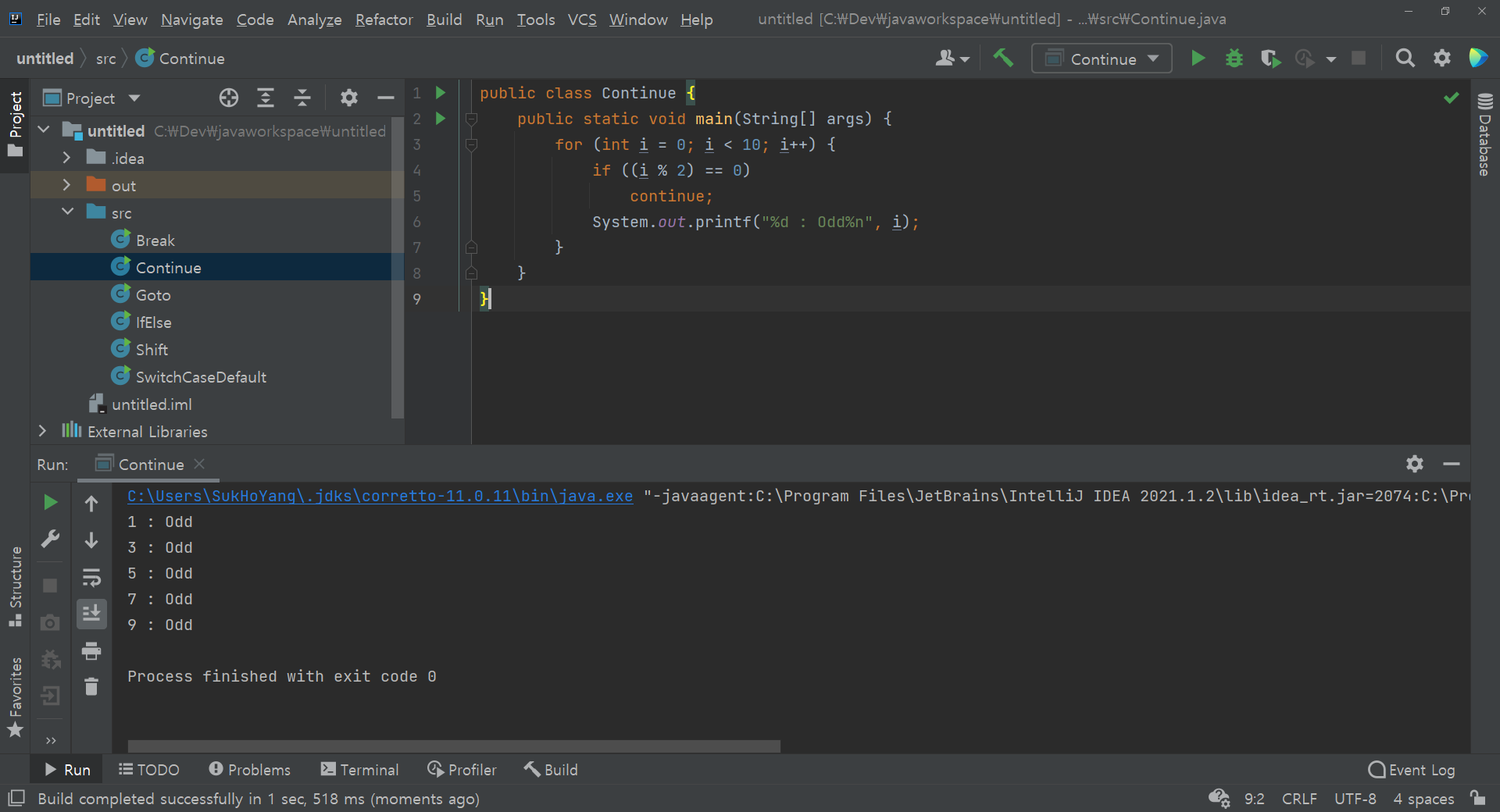 * Switch문에서는 continue를 사용할 수 없습니다.