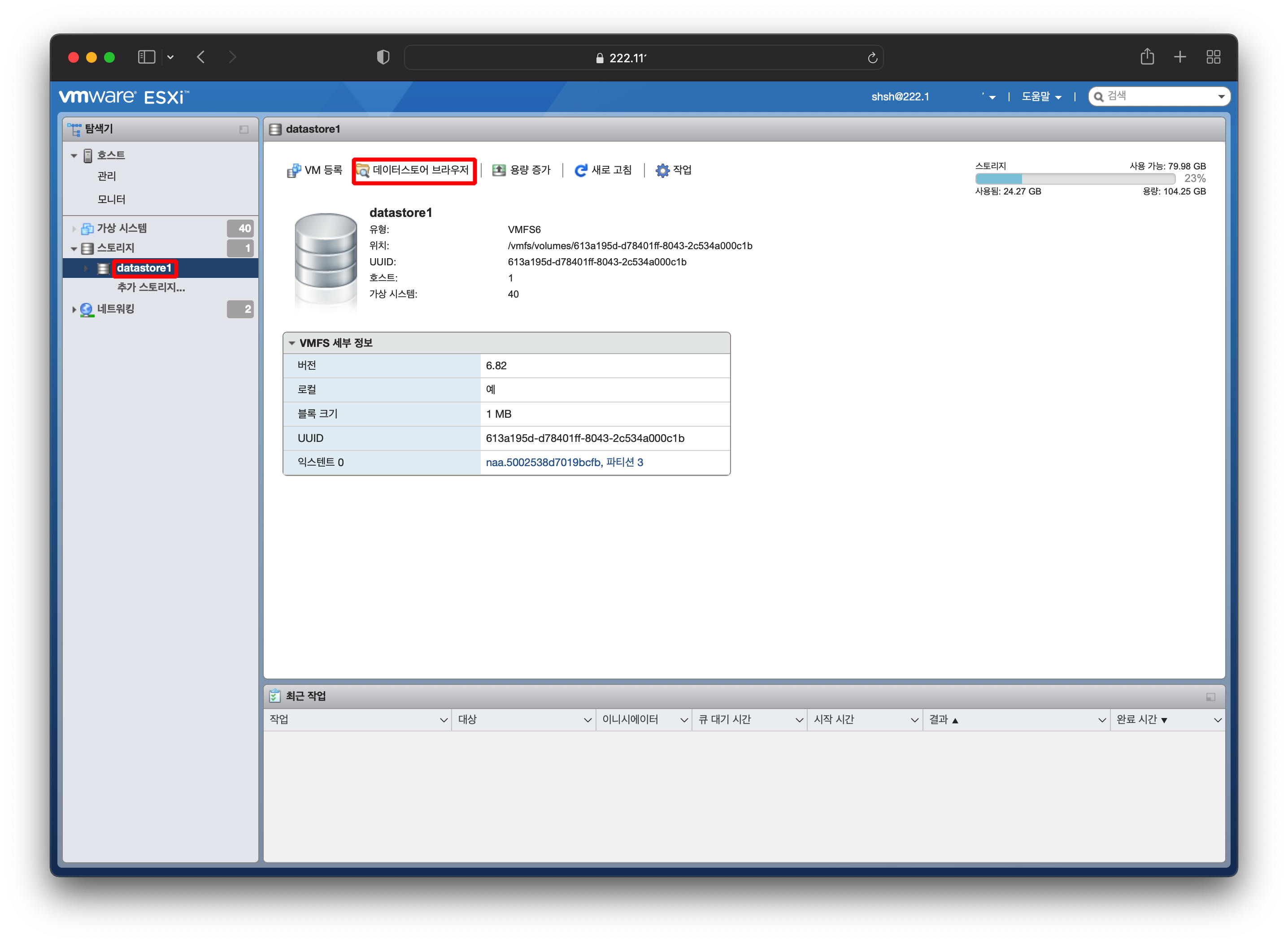 로그인 후 스토리지 => 데이터스토어 선택 => 데이터스토어 브라우저