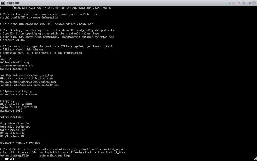 vi /etc/ssh/sshd_config 명령어를 넣어서 컨픽 파일을 열어준 후