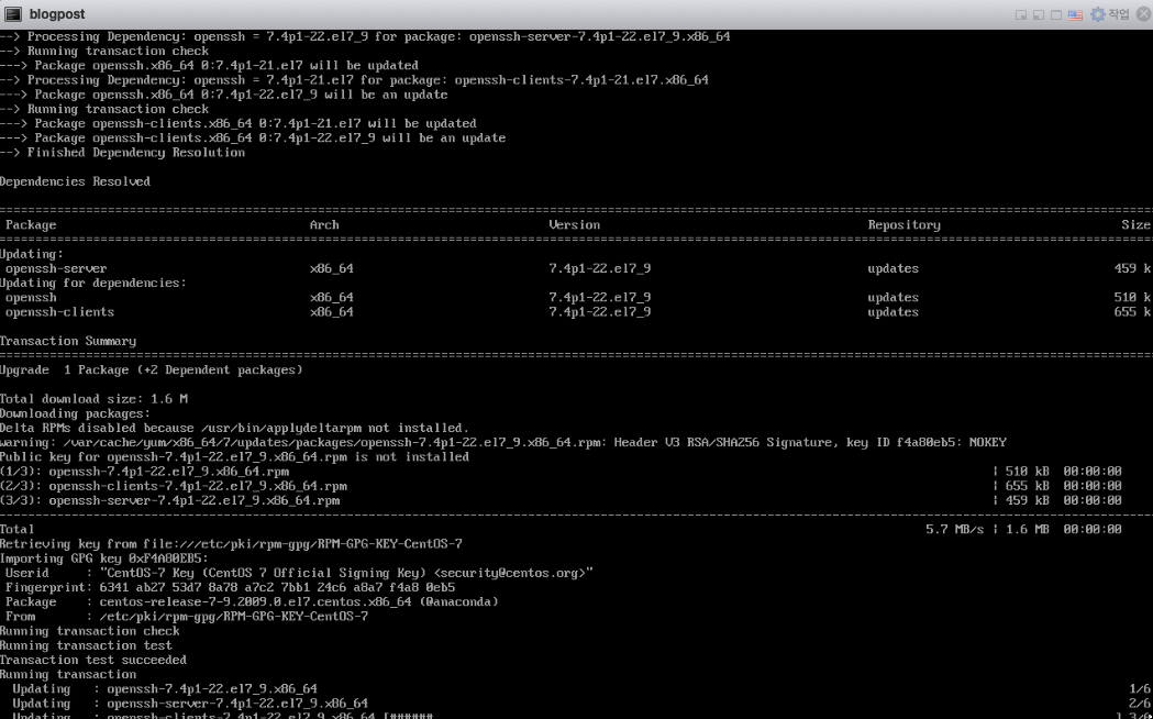 // 많은 포스팅들에서 openssh-clients도 다운받으라고 되어있지만 서버를 다운받은 후 다운받으려고 하면 이미 다운받았다는 매시지 출력됨