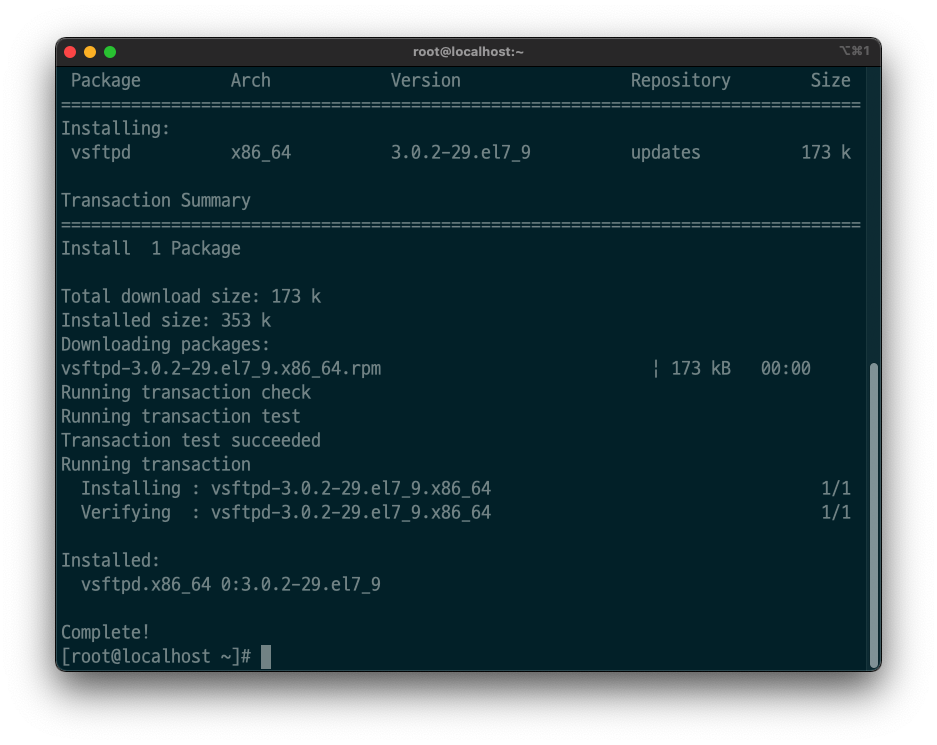 명령어로 vsftpd 설치를 진행합니다.