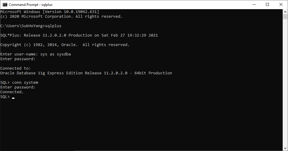 sqlplus 입력!